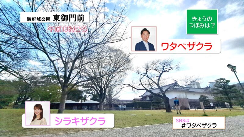 【名物】きょうも #駿府城公園 へ、#ワタベザクラ ...の状況を見ていきました。昼は暖かく朝晩も寒さ緩んでいる県内、午前10時には気温が15℃くらいまで上昇、ワタベザクラの変化は?きょうも17時台のお天気で報告します🖐️