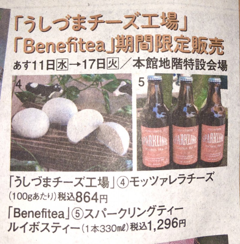 明日より松坂屋静岡店様ウィークリーグルメBenefiteaブースにてスパークリングティー11種類ほか様々な商品を販売致します。 お近くにお越しの際は是非お立ち寄りくださいませ!