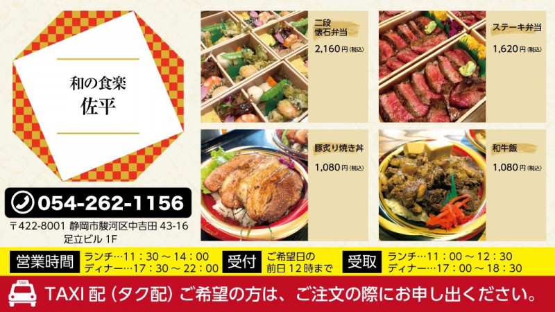 【ふじのくにうまい飯TAXI配情報】 新しいお仲間が増えました‼️ どうぞ宜しくお願い申し上げます‼️ 和の食楽 佐平様‼️ 駿河区中吉田