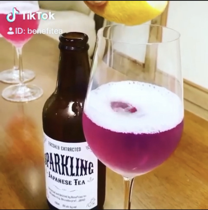 スパークリングティーサンルージュ茶‼️ 深緑→炭酸混入→パープル→酸(レモン果汁)→ピンクレッドに‼️ 何故かご注文やお問い合わせが‼️ 誠に有難うございます‼️